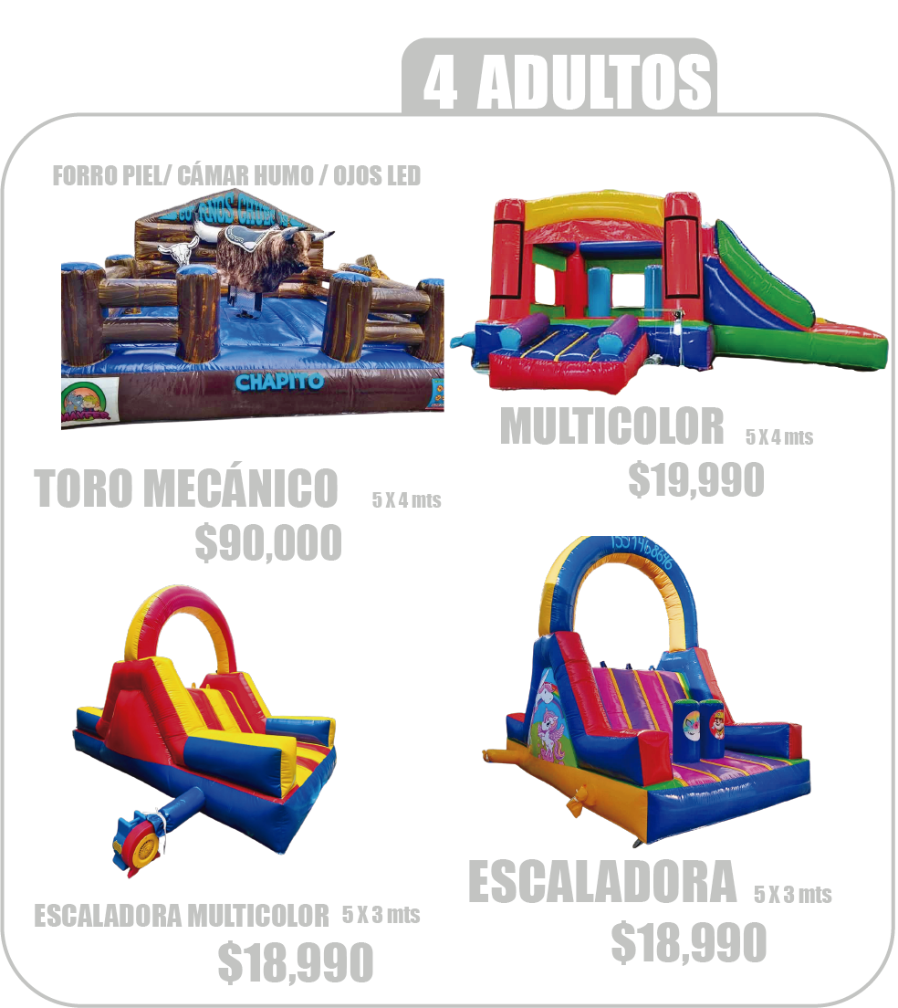 Somos, venta de juegos inflables y toros mecánicos , fabricamos brincolines inflables al gusto y diseño de nuestros clientes. Fabricantes directos