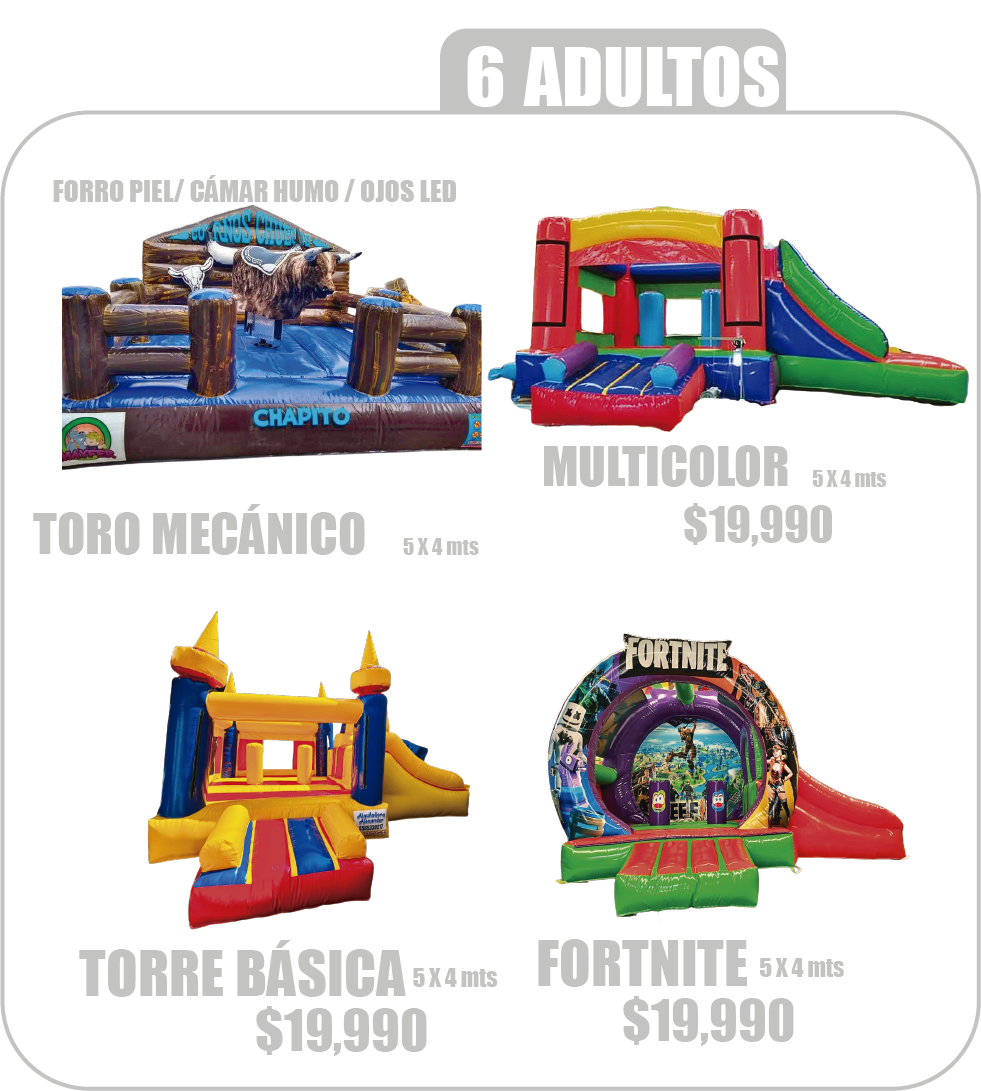 Somos, venta de juegos inflables y toros mecánicos, fabricamos brincolines inflables al gusto y diseño de nuestros clientes. Fabricantes directos.
